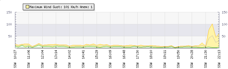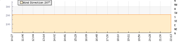 In the last few minutes the wind was South South West at an average speed of 7 kmh, reaching up to 10 kmh and a low of 4 kmh. The gust strength is6 kmh above the minimum speed |