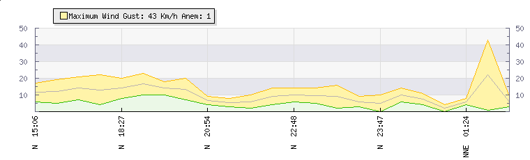 In the last few minutes the wind was Northerly at an average speed of 2 kmh, reaching up to 4 kmh and a low of 0 kmh. The gust strength is4 kmh above the minimum speed |