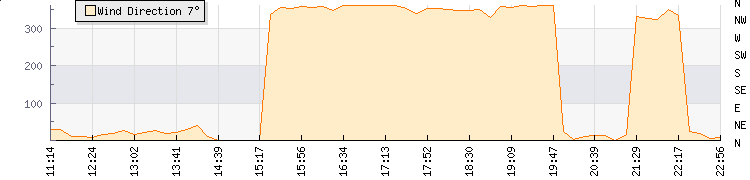 In the last few minutes the wind was North North East at an average speed of 3 mph, reaching up to 4 mph and a low of 2 mph. The gust strength is2 mph above the minimum speed |