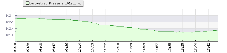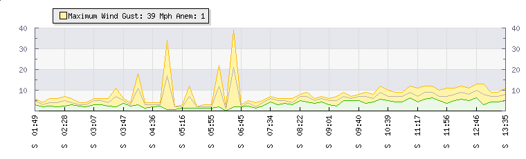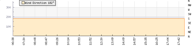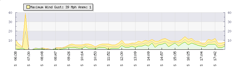 In the last few minutes the wind was Southerly at an average speed of 9 mph, reaching up to 12 mph and a low of 6 mph. The gust strength is6 mph above the minimum speed |