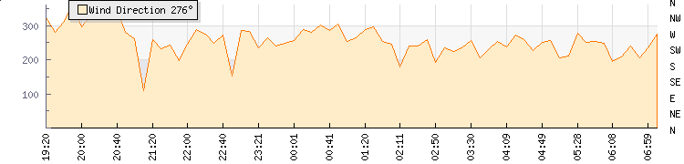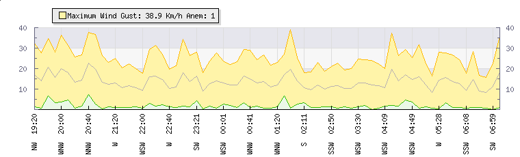 In the last few minutes the wind was Westerly at an average speed of 14 kmh, reaching up to 28 kmh and a low of 0 kmh. The gust strength is28 kmh above the minimum speed |