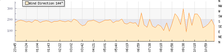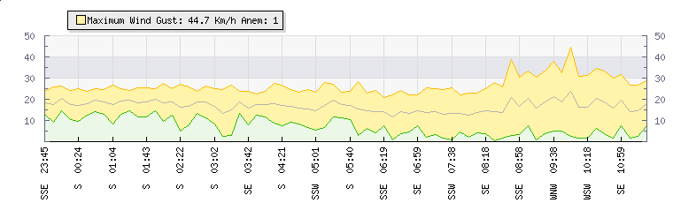 In the last few minutes the wind was Easterly at an average speed of 19 kmh, reaching up to 33 kmh and a low of 5 kmh. The gust strength is28 kmh above the minimum speed |