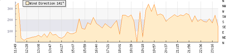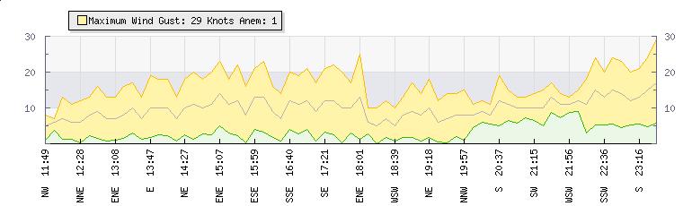In the last few minutes the wind was Southerly at an average speed of 15 knots, reaching up to 24 knots and a low of 5 knots. The gust strength is19 knots above the minimum speed |
