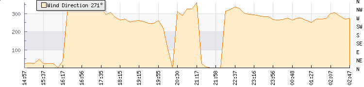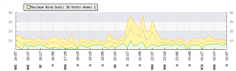 In the last few minutes the wind was Westerly at an average speed of 9 knots, reaching up to 12 knots and a low of 5 knots. The gust strength is7 knots above the minimum speed |