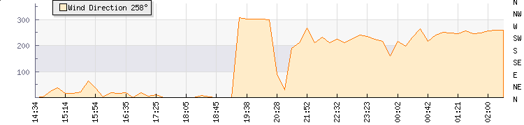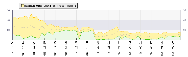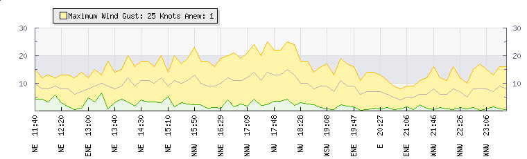 In the last few minutes the wind was Northerly at an average speed of 11 knots, reaching up to 18 knots and a low of 5 knots. The gust strength is13 knots above the minimum speed |