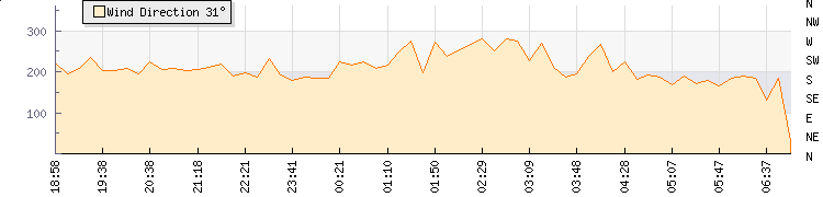 In the last few minutes the wind was Southerly at an average speed of 6 knots, reaching up to 9 knots and a low of 2 knots. The gust strength is7 knots above the minimum speed |