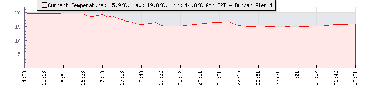 GPS Co-ordinates: | S 29º 52' 35, E 31º 1' 24 | ASL: | 55 feet | Sunrise / Sunset: | 05:34 / 17:57 | Beaufort Scale: | Light Breeze |