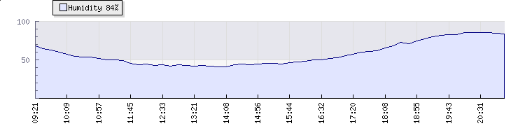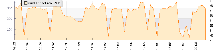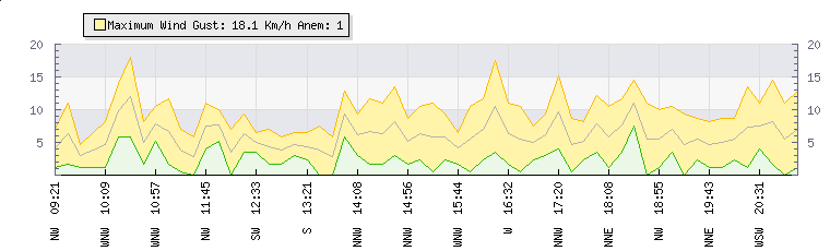 In the last few minutes the wind was South Easterly at an average speed of 5 kmh, reaching up to 9 kmh and a low of 1 kmh. The gust strength is8 kmh above the minimum speed |