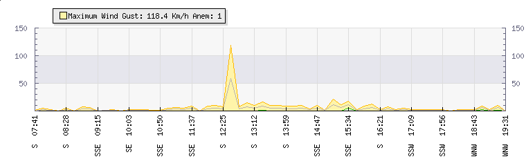 In the last few minutes the wind was South South East at an average speed of 1 kmh, reaching up to 2 kmh and a low of 0 kmh. The gust strength is2 kmh above the minimum speed |