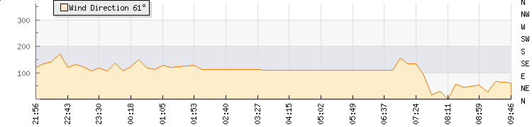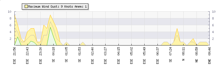 In the last few minutes the wind was East South East at an average speed of 3 knots, reaching up to 6 knots and a low of 0 knots. The gust strength is6 knots above the minimum speed |