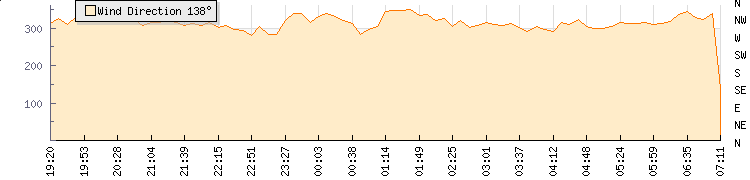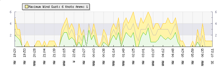 In the last few minutes the wind was West North West at an average speed of 4 knots, reaching up to 5 knots and a low of 3 knots. The gust strength is2 knots above the minimum speed |