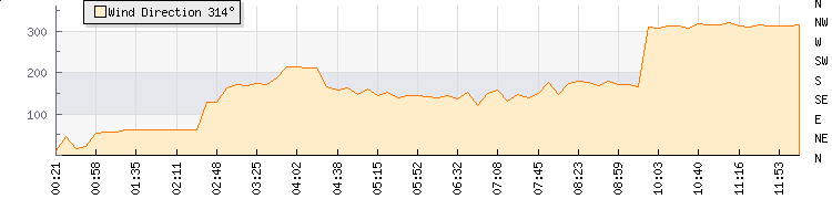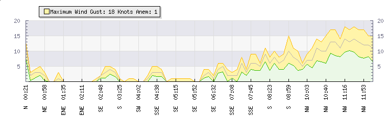 In the last few minutes the wind was North Easterly at an average speed of 4 knots, reaching up to 5 knots and a low of 2 knots. The gust strength is3 knots above the minimum speed |