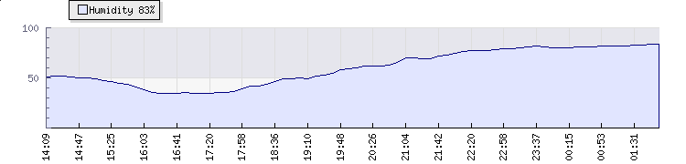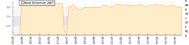 In the last few minutes the wind was North Westerly at an average speed of 14 kmh, reaching up to 19 kmh and a low of 9 kmh. The gust strength is10 kmh above the minimum speed |
