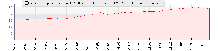 GPS Co-ordinates: | S 33º 56' 21, E 18º 26' 51 | ASL: | 82 feet | Sunrise / Sunset: | 06:02 / 19:02 | Beaufort Scale: | Moderate Breeze |