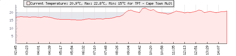| GPS Co-ordinates: | S 33º 56' 21, E 18º 26' 51 | | ASL: | 82 feet | | Sunrise / Sunset: | 07:01 / 18:36 | | Beaufort Scale: | Light Breeze |