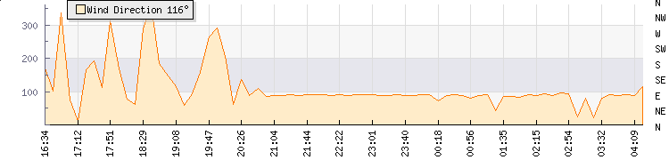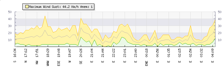 In the last few minutes the wind was Easterly at an average speed of 10 kmh, reaching up to 15 kmh and a low of 5 kmh. The gust strength is10 kmh above the minimum speed |
