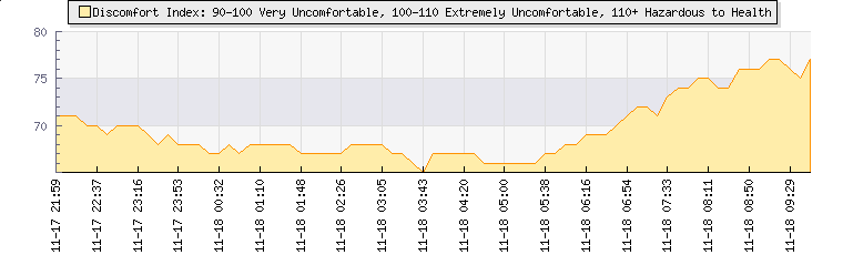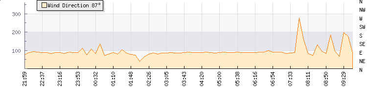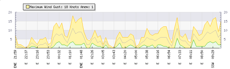 In the last few minutes the wind was Easterly at an average speed of 1 knots, reaching up to 3 knots and a low of 0 knots. The gust strength is3 knots above the minimum speed |