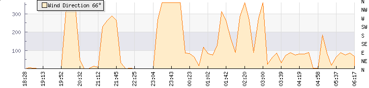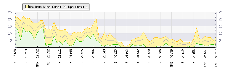 In the last few minutes the wind was Easterly at an average speed of 3 mph, reaching up to 4 mph and a low of 1 mph. The gust strength is3 mph above the minimum speed |