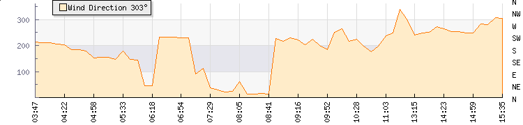 In the last few minutes the wind was West South West at an average speed of 9 mph, reaching up to 15 mph and a low of 3 mph. The gust strength is12 mph above the minimum speed |