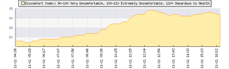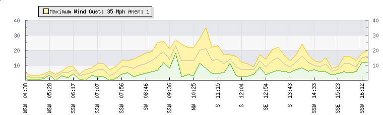 In the last few minutes the wind was South Easterly at an average speed of 12 mph, reaching up to 17 mph and a low of 6 mph. The gust strength is11 mph above the minimum speed |