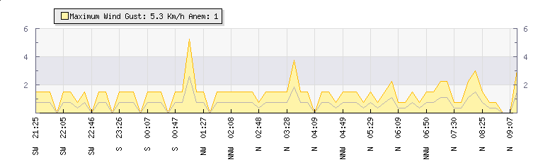 Weather Summary: In the last few minutes the wind was Northerly at an average speed of 1 kmh, reaching up to 1 kmh and a low of 0 kmh. The gust strength is1 kmh above the minimum speed