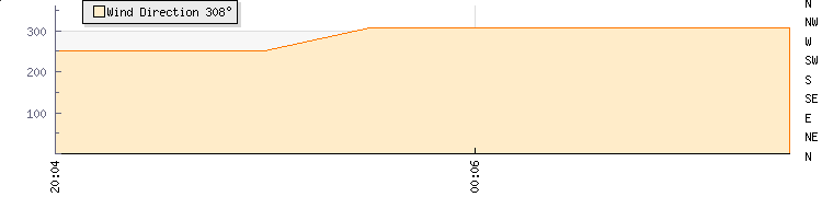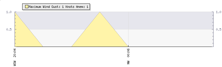In the last few minutes the wind was North Westerly at an average speed of 0 knots, reaching up to 0 knots and a low of 0 knots. The gust strength is0 knots above the minimum speed |