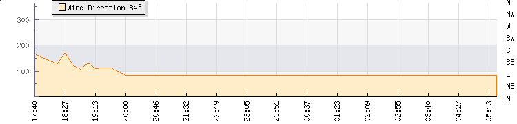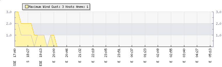 In the last few minutes the wind was Easterly at an average speed of 0 knots, reaching up to 0 knots and a low of 0 knots. The gust strength is0 knots above the minimum speed |