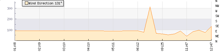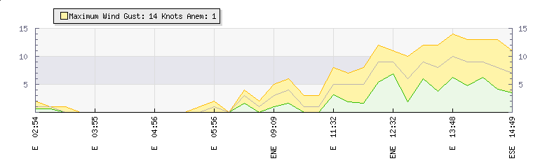 In the last few minutes the wind was East North East at an average speed of 9 knots, reaching up to 12 knots and a low of 6 knots. The gust strength is6 knots above the minimum speed |