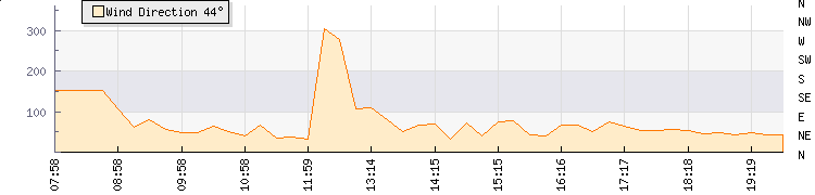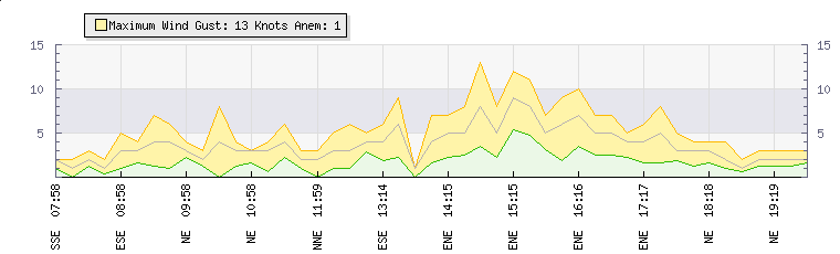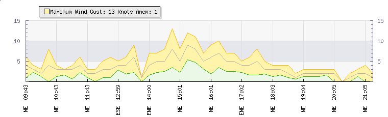 In the last few minutes the wind was North Easterly at an average speed of 3 knots, reaching up to 4 knots and a low of 1 knots. The gust strength is3 knots above the minimum speed |