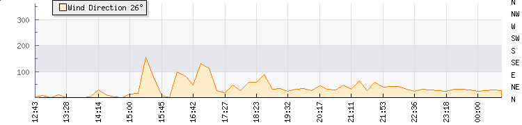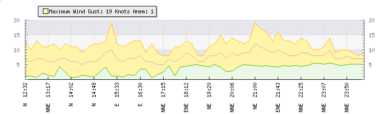 In the last few minutes the wind was North North East at an average speed of 8 knots, reaching up to 10 knots and a low of 5 knots. The gust strength is5 knots above the minimum speed |