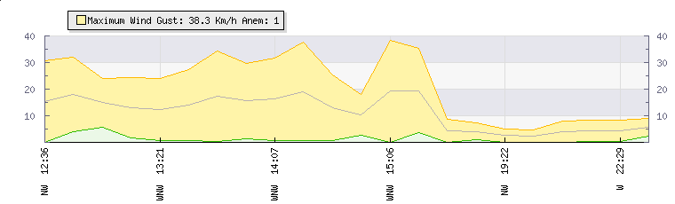 In the last few minutes the wind was Northerly at an average speed of 2 kmh, reaching up to 5 kmh and a low of 0 kmh. The gust strength is5 kmh above the minimum speed |