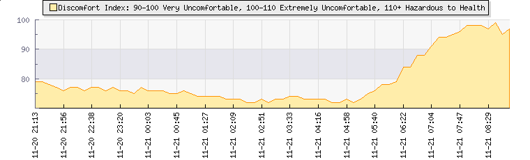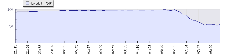 | Wind Gust: | 4 km/h | Min Temp: | 16.1 °C | Max Temp: | 29.2 °C | | Wind Average: | 3 km/h | Min Hum: | 53 % | Max Hum: | 99 % | |  |