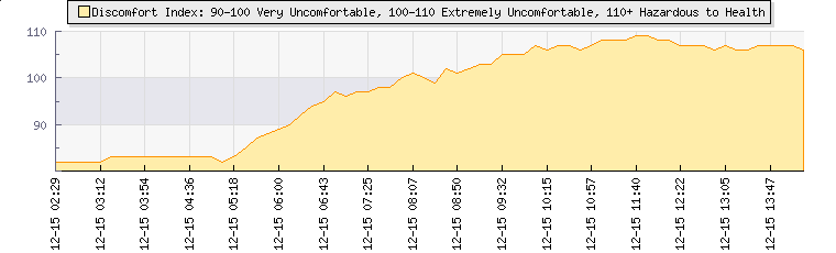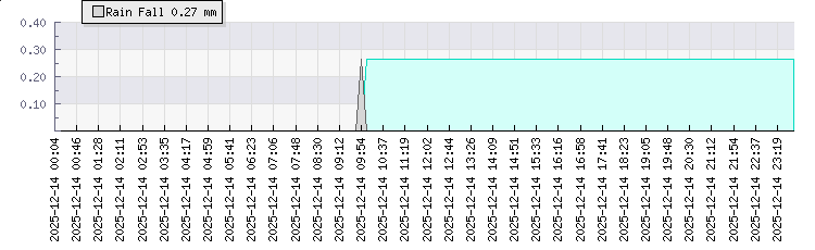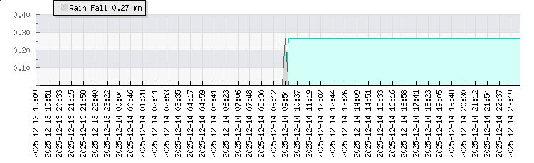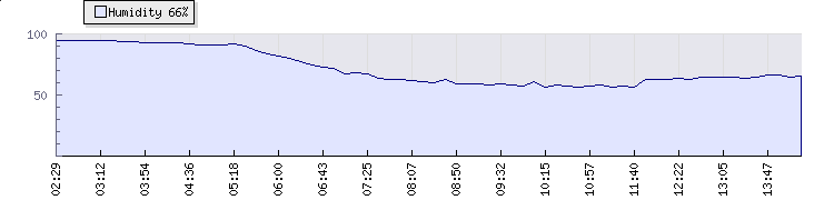 | Wind Gust: | 15 km/h | Min Temp: | 17.4 °C | Max Temp: | 28.7 °C | | Wind Average: | 12 km/h | Min Hum: | 55 % | Max Hum: | 99 % | |  |