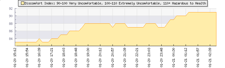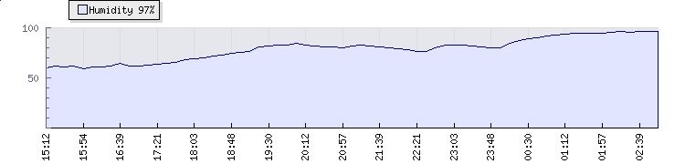| Wind Gust: | 7 km/h | Min Temp: | 22.6 °C | Max Temp: | 22.6 °C | | Wind Average: | 5 km/h | Min Hum: | 87 % | Max Hum: | 94 % | |  |
