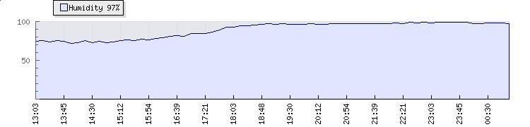 | Wind Gust: | 20 km/h | Min Temp: | -143.9 °C | Max Temp: | 22.6 °C | | Wind Average: | 15 km/h | Min Hum: | 10 % | Max Hum: | 100 % | |  |