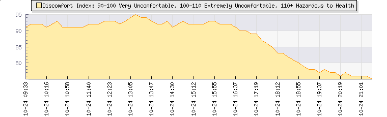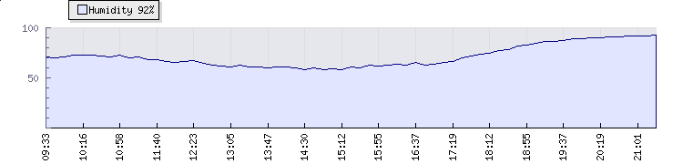 | Wind Gust: | 19 km/h | Min Temp: | 15.7 °C | Max Temp: | 23.3 °C | | Wind Average: | 12 km/h | Min Hum: | 75 % | Max Hum: | 100 % | |  |