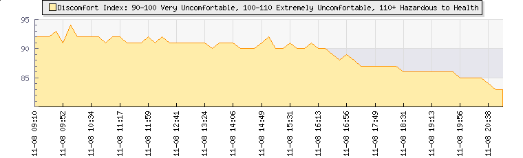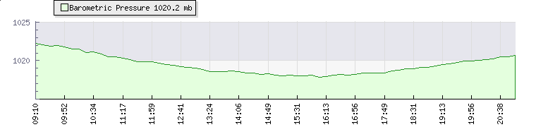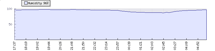 | Wind Gust: | 23 km/h | Min Temp: | 18 °C | Max Temp: | 26.4 °C | | Wind Average: | 18 km/h | Min Hum: | 61 % | Max Hum: | 95 % | |  |