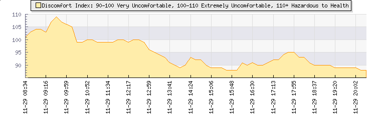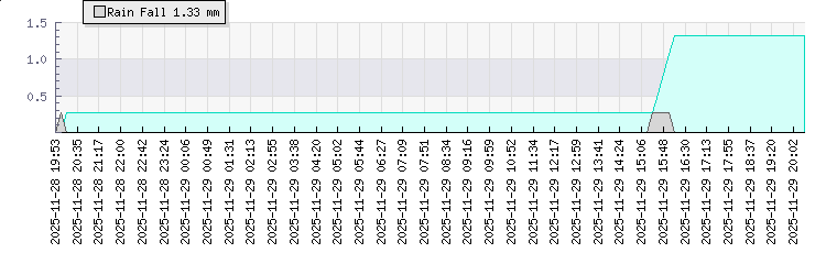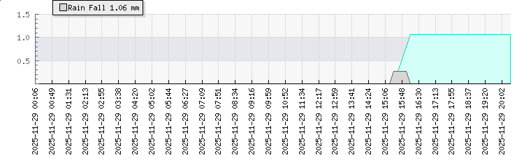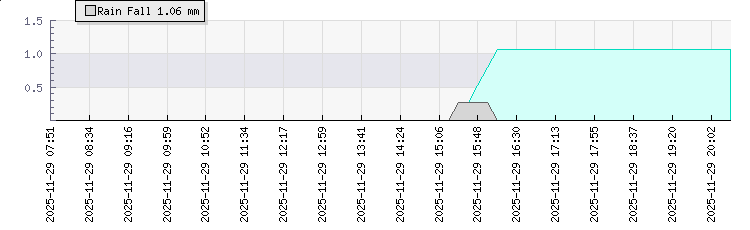 | Wind Gust: | 20 km/h | Min Temp: | 21.8 °C | Max Temp: | 33.1 °C | | Wind Average: | 13 km/h | Min Hum: | 56 % | Max Hum: | 93 % | |  |