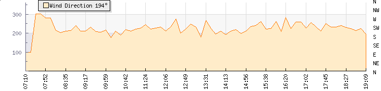 | Wind Gust: | 10 knots | Min Temp: | 21.7 °C | Max Temp: | 36 °C | | Wind Average: | 8 knots | Min Hum: | 52 % | Max Hum: | 88 % | |  |
