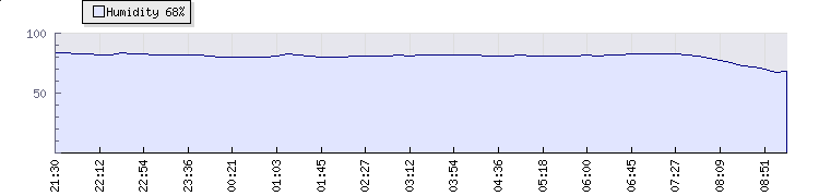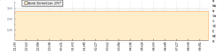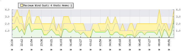 | Wind Gust: | 3 knots | Min Temp: | 22.6 °C | Max Temp: | 22.6 °C | | Wind Average: | 2 knots | Min Hum: | 80 % | Max Hum: | 83 % | |  |
