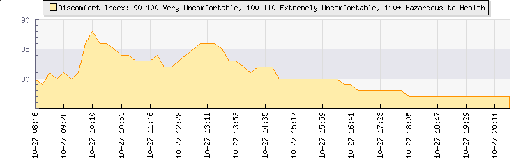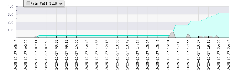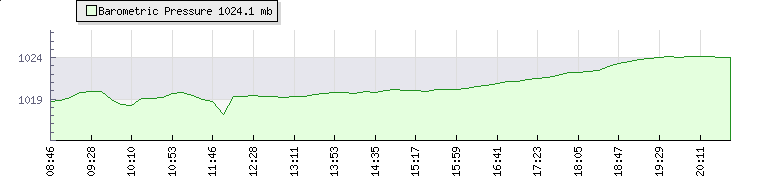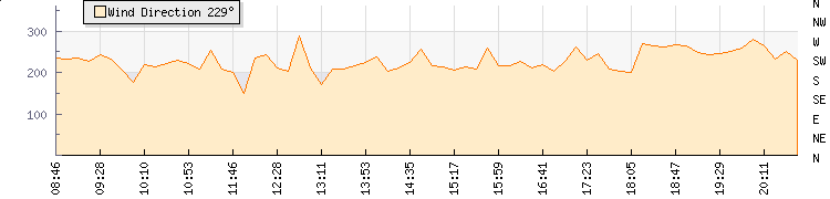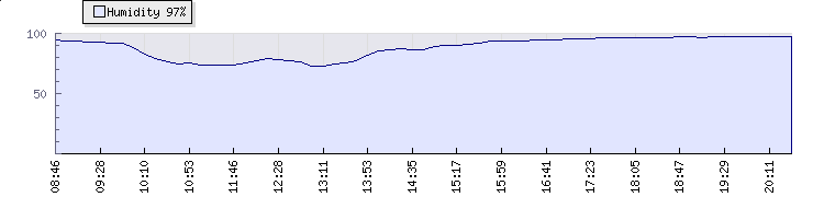 | Wind Gust: | 9 mph | Min Temp: | 18 °C | Max Temp: | 22.7 °C | | Wind Average: | 6 mph | Min Hum: | 73 % | Max Hum: | 96 % | |  |