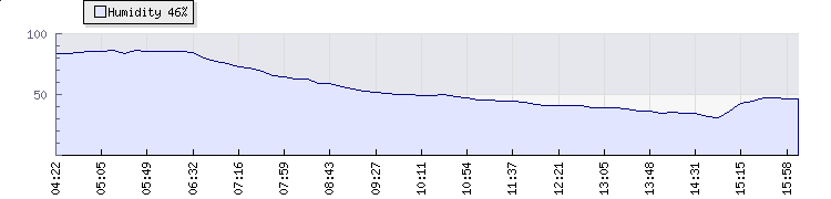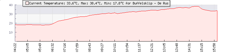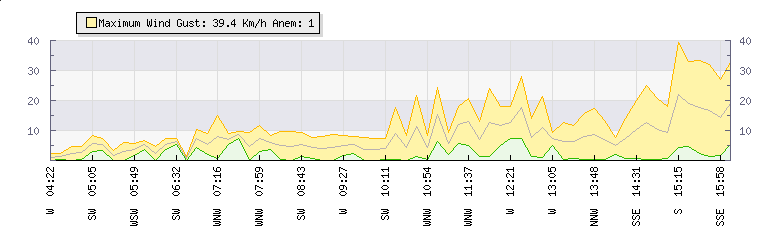 | Wind Gust: | - | Min Temp: | 17.8 °C | Max Temp: | 38.4 °C | | Wind Average: | - | Min Hum: | 31 % | Max Hum: | 87 % | |  |