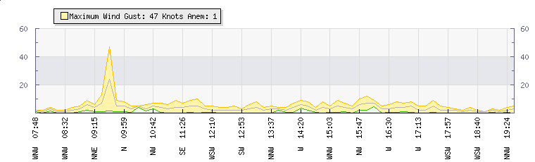 | Wind Gust: | - | Min Temp: | 13.5 °C | Max Temp: | 34 °C | | Wind Average: | - | Min Hum: | 26 % | Max Hum: | 98 % | |  |