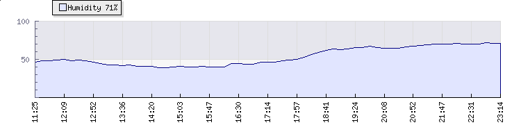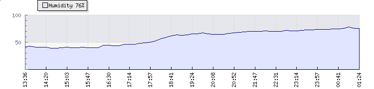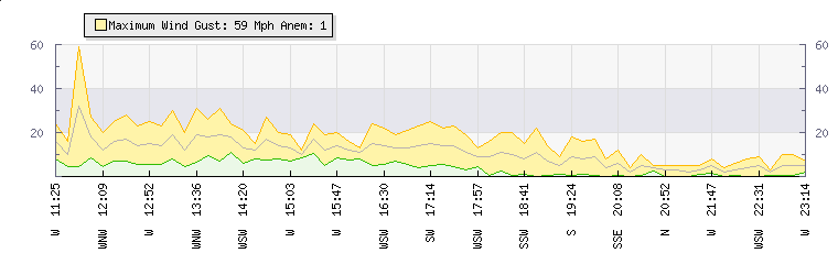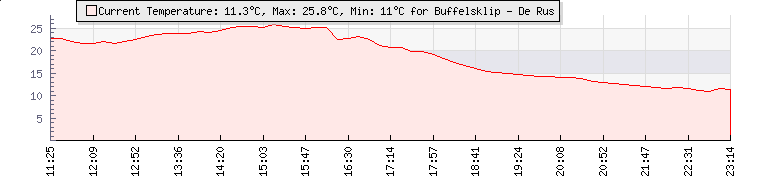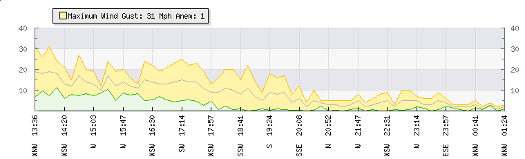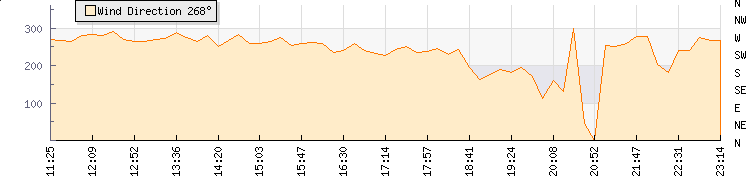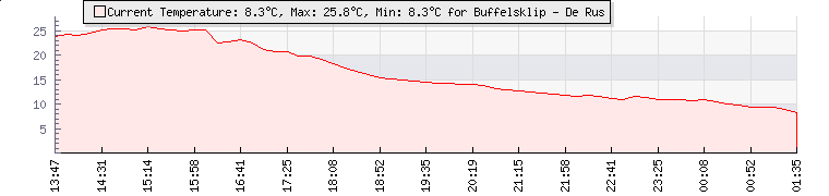 Wind Gust: | - | Min Temp: | 12.7 °C | Max Temp: | 25.8 °C | Wind Average: | - | Min Hum: | 39 % | Max Hum: | 68 % | |  |