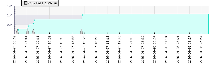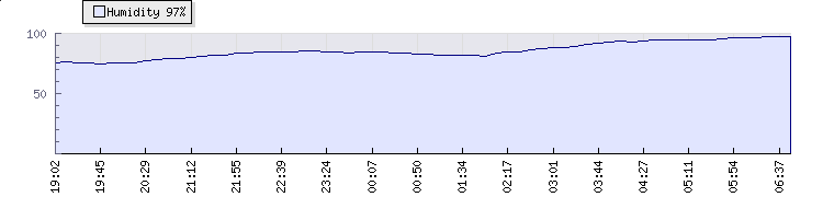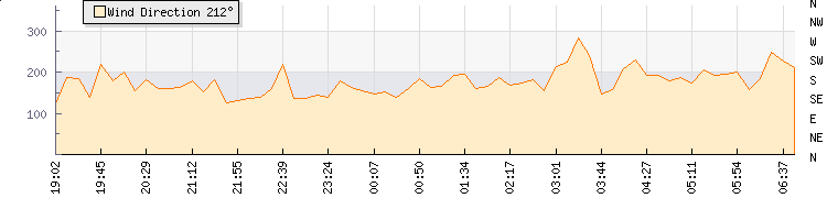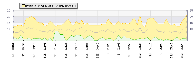 | Wind Gust: | - | Min Temp: | 7.3 °C | Max Temp: | 8.8 °C | | Wind Average: | - | Min Hum: | 81 % | Max Hum: | 95 % | |  |