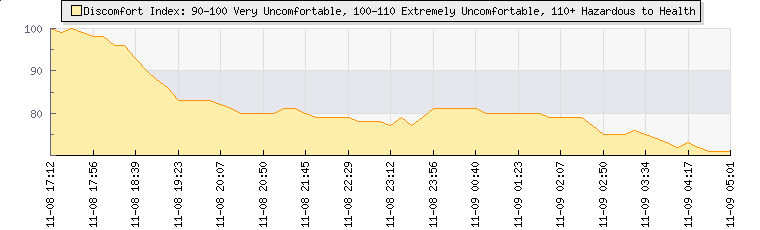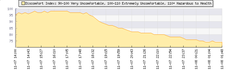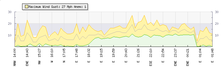| Wind Gust: | - | Min Temp: | 19.6 °C | Max Temp: | 22.7 °C | | Wind Average: | - | Min Hum: | 52 % | Max Hum: | 62 % | |  |