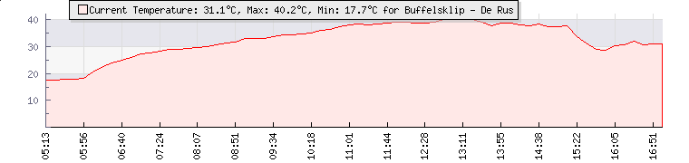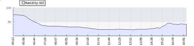 | Wind Gust: | - | Min Temp: | 17 °C | Max Temp: | 33 °C | | Wind Average: | - | Min Hum: | 32 % | Max Hum: | 76 % | |  |