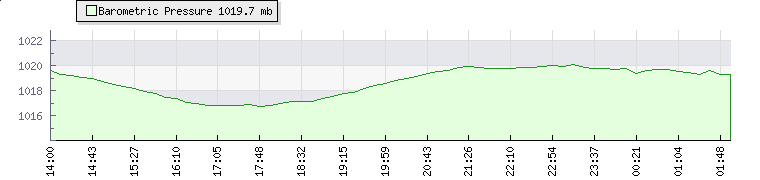 | Wind Speed: | -|-|- mph | Wind Direction: | NE 51° | Temperature: | 19.6°C | | Wet Bulb: | 14.9°C | Discomfort: | 75 | Humidity: | 62% | | Rainfall Today: | 0mm | 12 hrs Rainfall: | 0mm | 24 hrs Rainfall: | 0mm | | Barometer: | 1019.6mb | Dew Point: | 12.1°C | Clouds AGL: | 2995ft (913 m) | | Density-Alt: | 3012ft (918 m) |