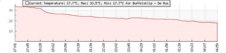 | GPS Co-ordinates: | S 33º 18' 36, E 22º 31' 48 | | ASL: | 2034 feet | | Sunrise / Sunset: | 05:25 / 19:03 | | Beaufort Scale: | Light Breeze |