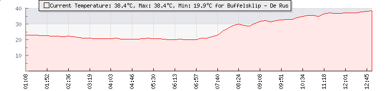| Wind Gust: | - | Min Temp: | 19.9 °C | Max Temp: | 37.1 °C | | Wind Average: | - | Min Hum: | 30 % | Max Hum: | 80 % | |  |